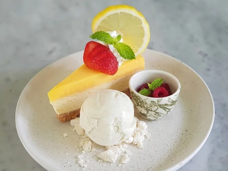 ミント、バニラビーンズアイスクリーム、いちごを添えて、ラズベリーソースとともに 290